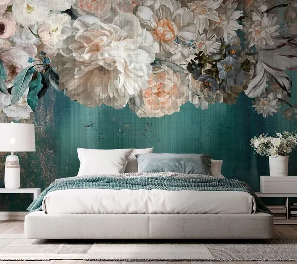 Fototapeten Großer üppiger Blumenstrauß mit Grunge-Textur N° u95430