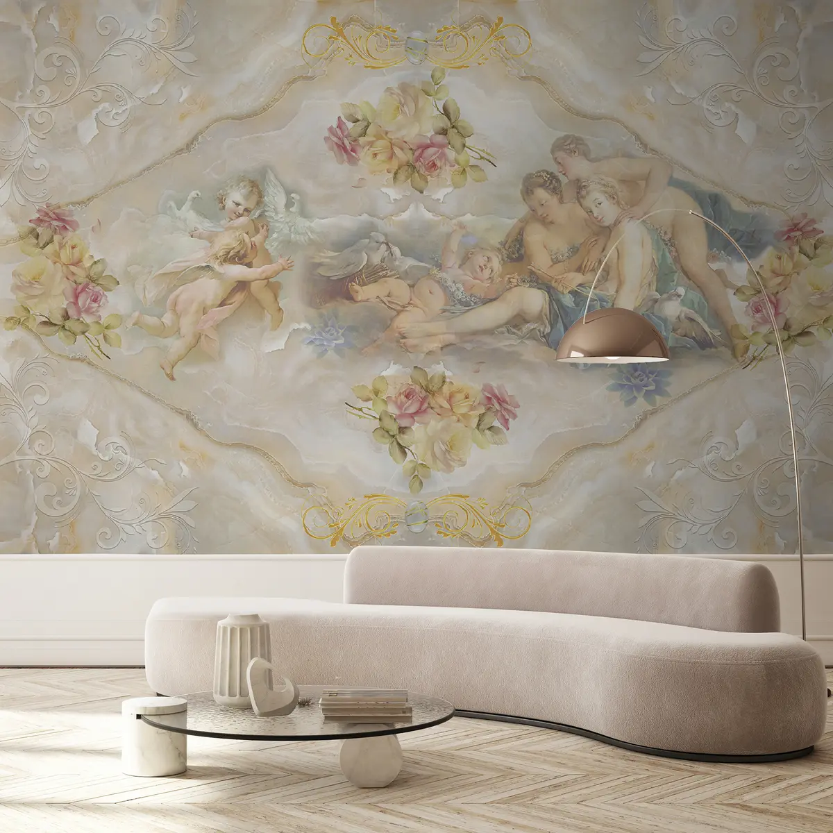 Sie können die Tapete sehr vorsichtig mit einem leicht feuchten Schwamm reinigen. Wir raten jedoch davon ab, die Tapete zu schrubben oder Reinigungsmittel zu verwenden, da dies die Oberfläche und die Farben der Tapete beschädigen kann.