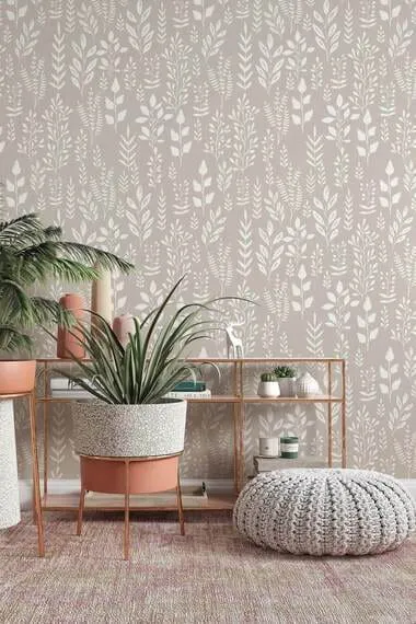 Fototapeten Abstraktion mit Blumen und Blättern in Beigetönen