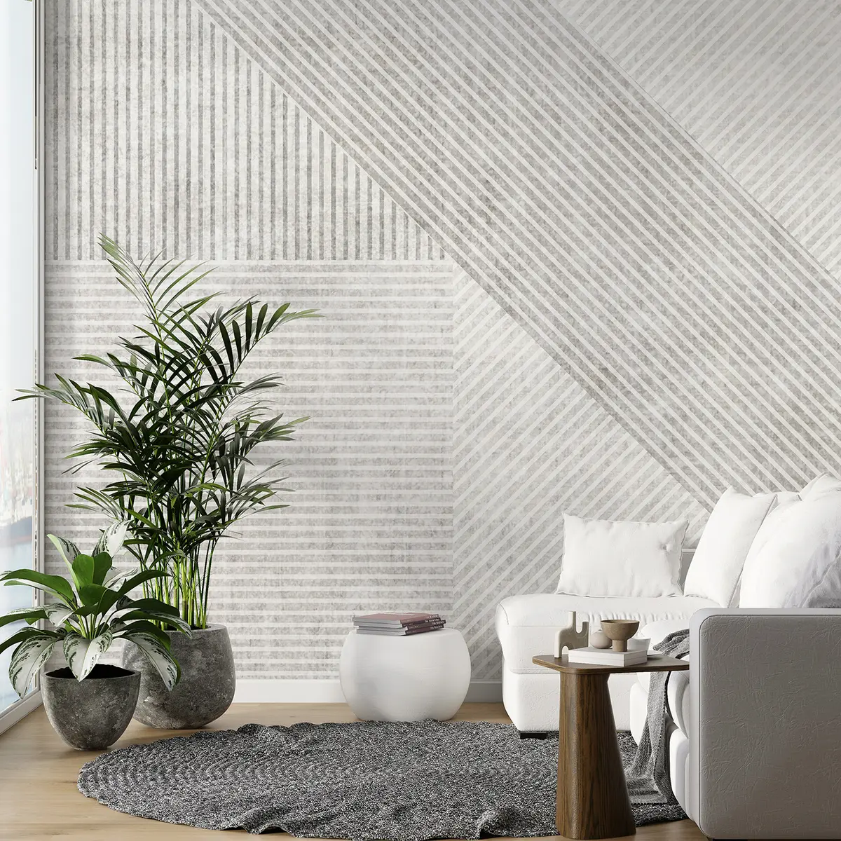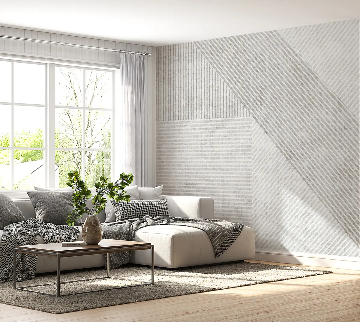 Die Tapete wird in praktische Streifen von jeweils bis zu 50 cm Breite aufgeteilt