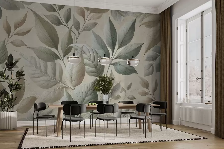 Fototapeten Exquisites Muster mit großen Blättern in eleganten Creme- und Beigetönen