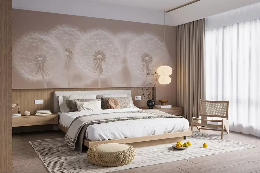 Fototapeten Zarte rosa luftigen Löwenzahn auf einem rosa natürlichen Hintergrund