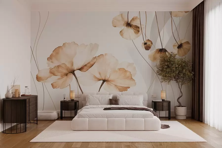 Fototapeten blumen im Aquarellstil in Brauntönen