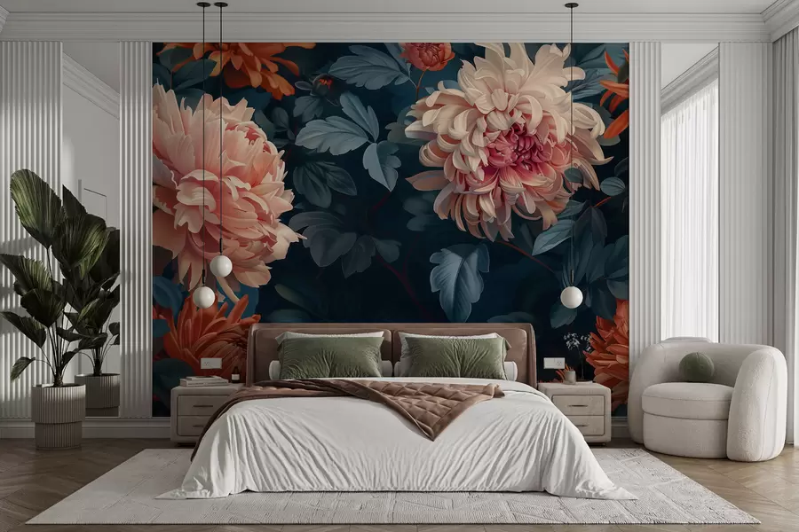 Fototapeten Elegante Komposition aus Chrysanthemen in Pastellfarben