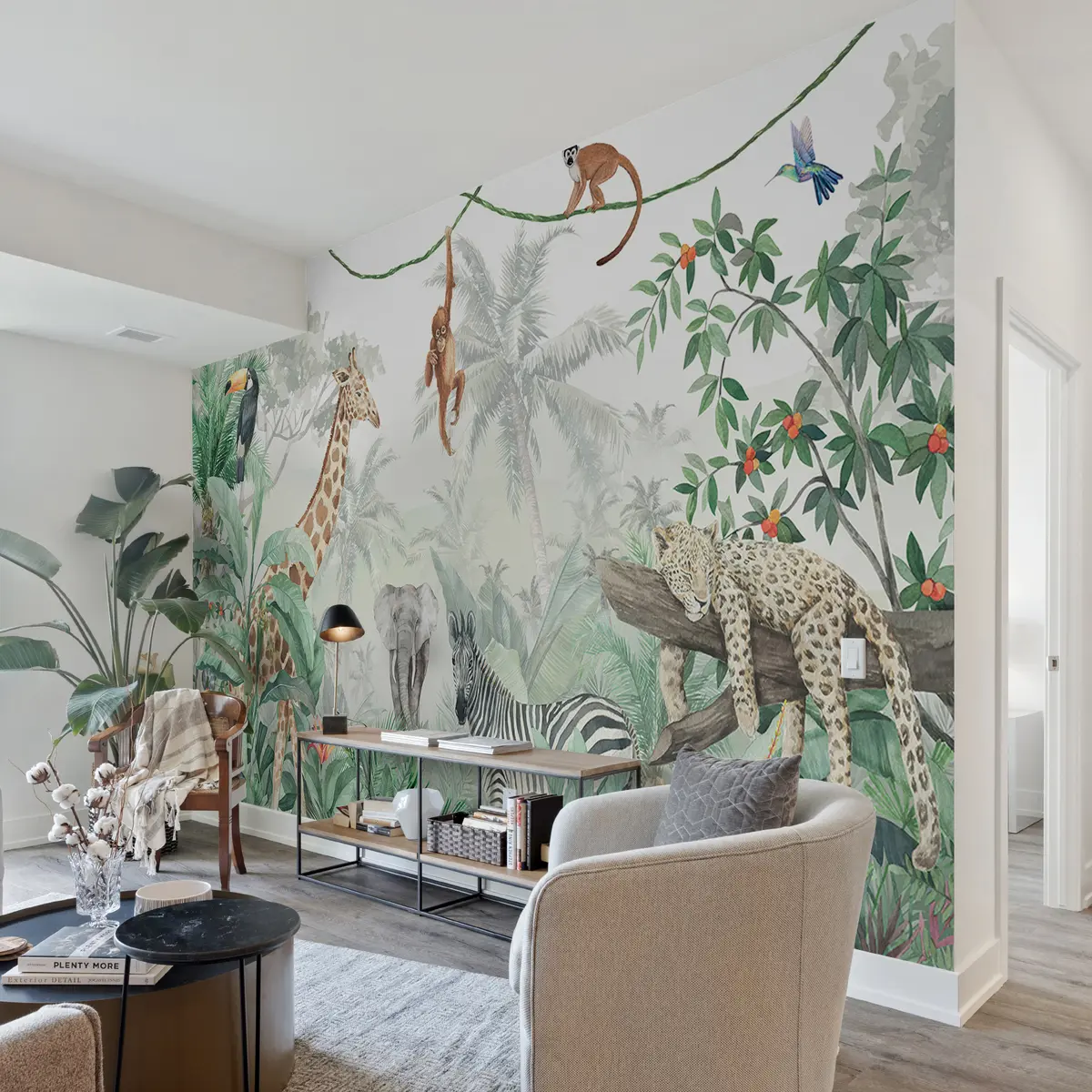 Fototapeten Panorama des Dschungels mit Tieren N° u74709