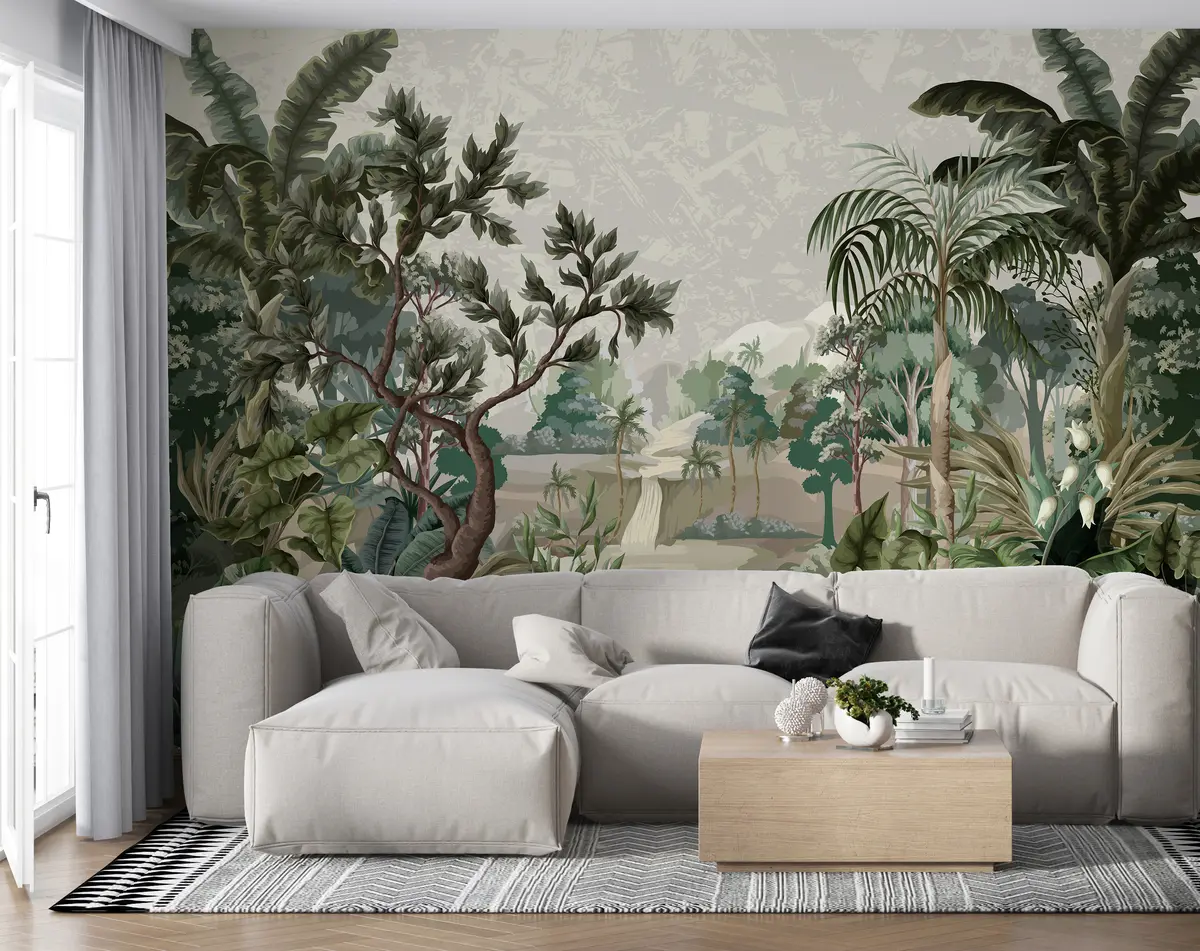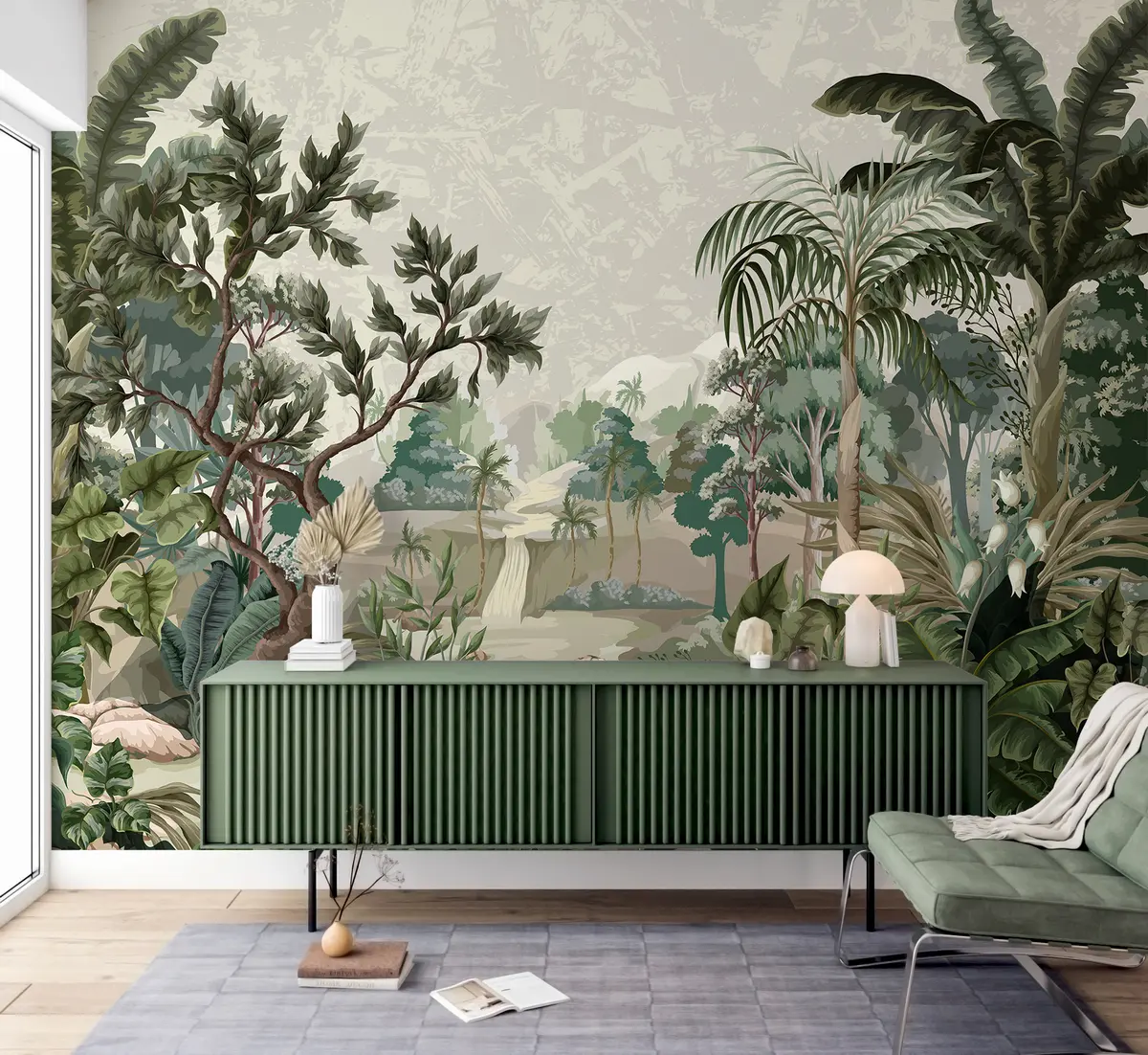 Fototapeten Dschungel mit Fluss und Palmen N° u95915
