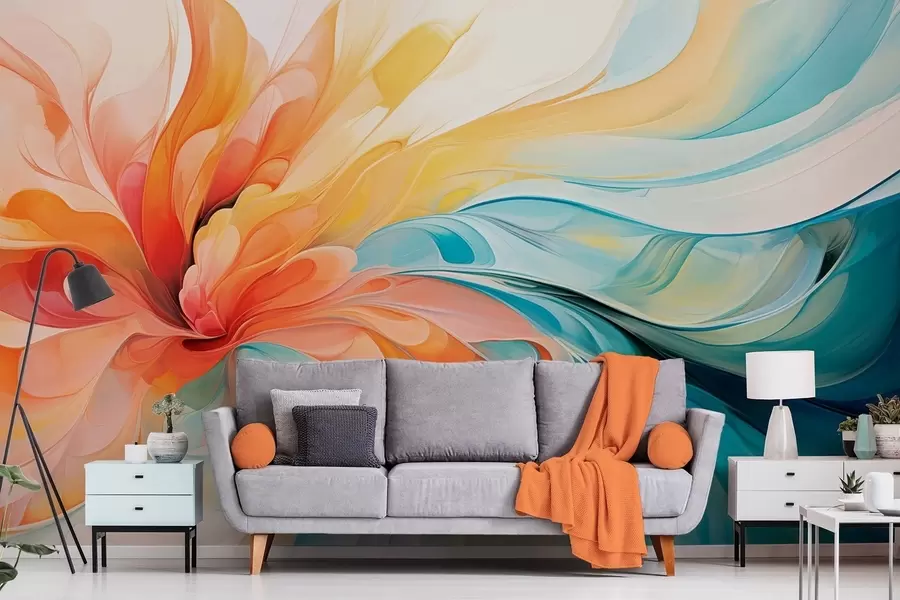 Fototapeten Nachahmung eines Aquarell-Lotus vor einem abstrakten Hintergrund mit Pinselstrichen