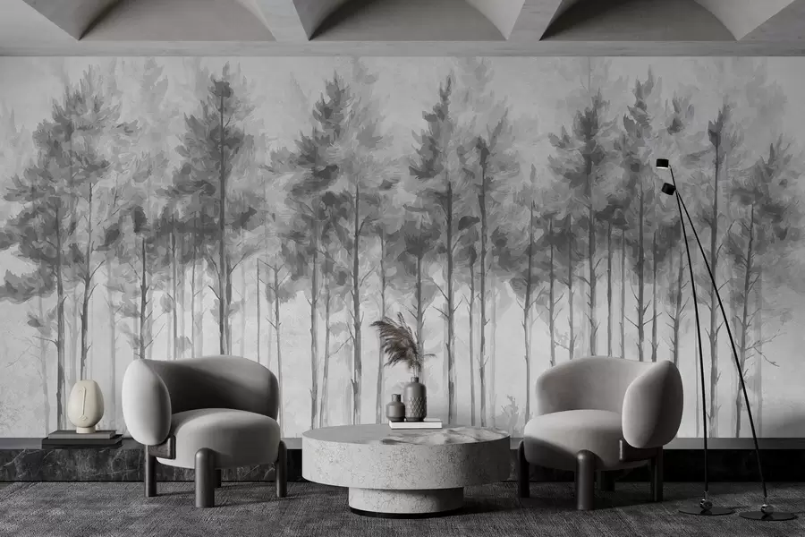 Fototapeten Abstrakter gemalter Wald an der Wand