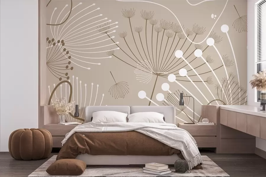 Fototapeten Eine minimalistische Abstraktion mit organischen Formen, stilisierten Ästen oder Pflanzen mit zarten floralen Details