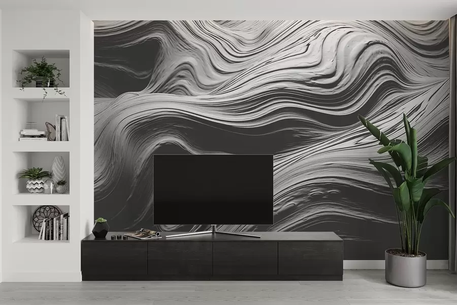 Fototapeten Geometrische Wellen Abstraktion, verschwommener Stil, Gradient, graue Farben