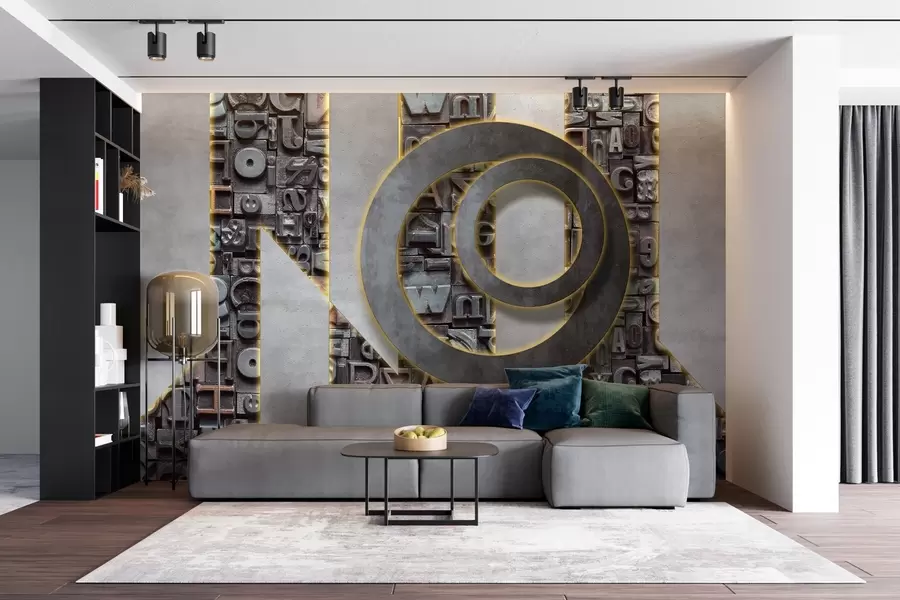 Fototapeten Moderne Tapete im Loft-Stil mit Nachahmung von dreidimensionalen Buchstaben, Beton und Hintergrundbeleuchtung