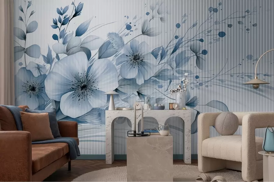 Fototapeten Lineare zarte Blüten in Blautönen