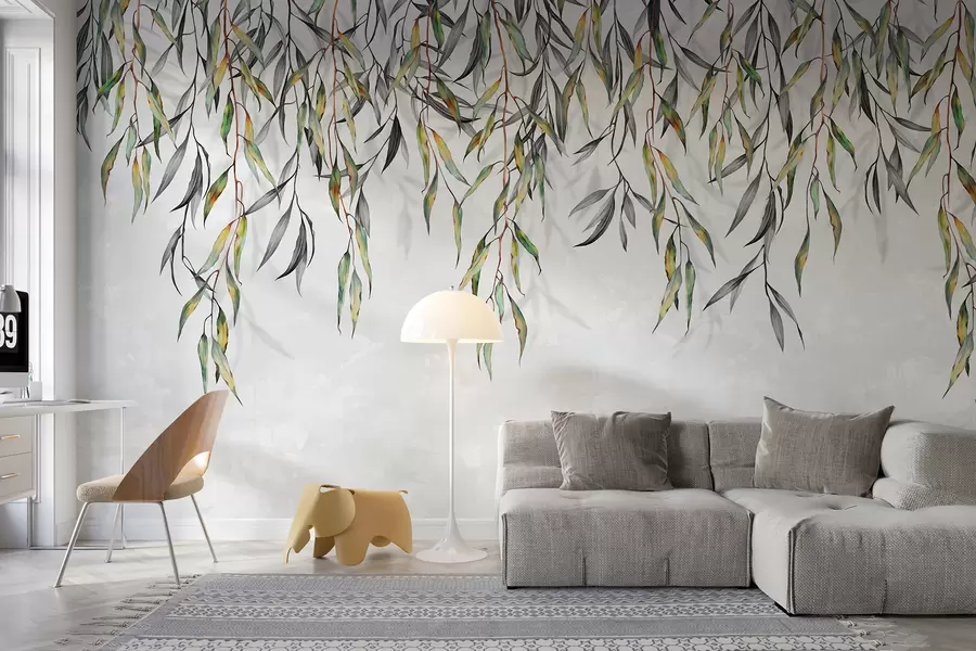 Fototapeten Hängende Zweige mit Blättern in Grüntönen