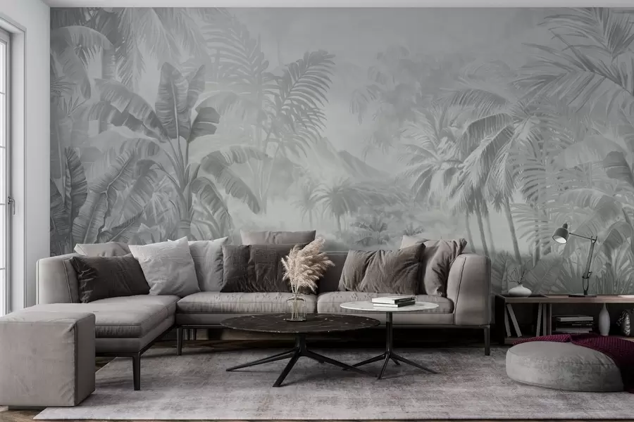 Fototapeten Texturierte tropische Retrotapete in Grautönen
