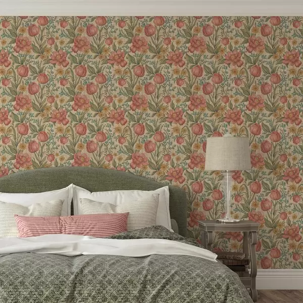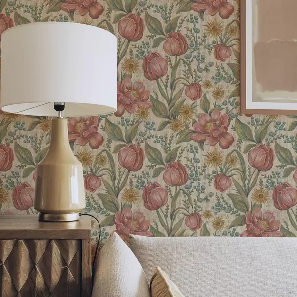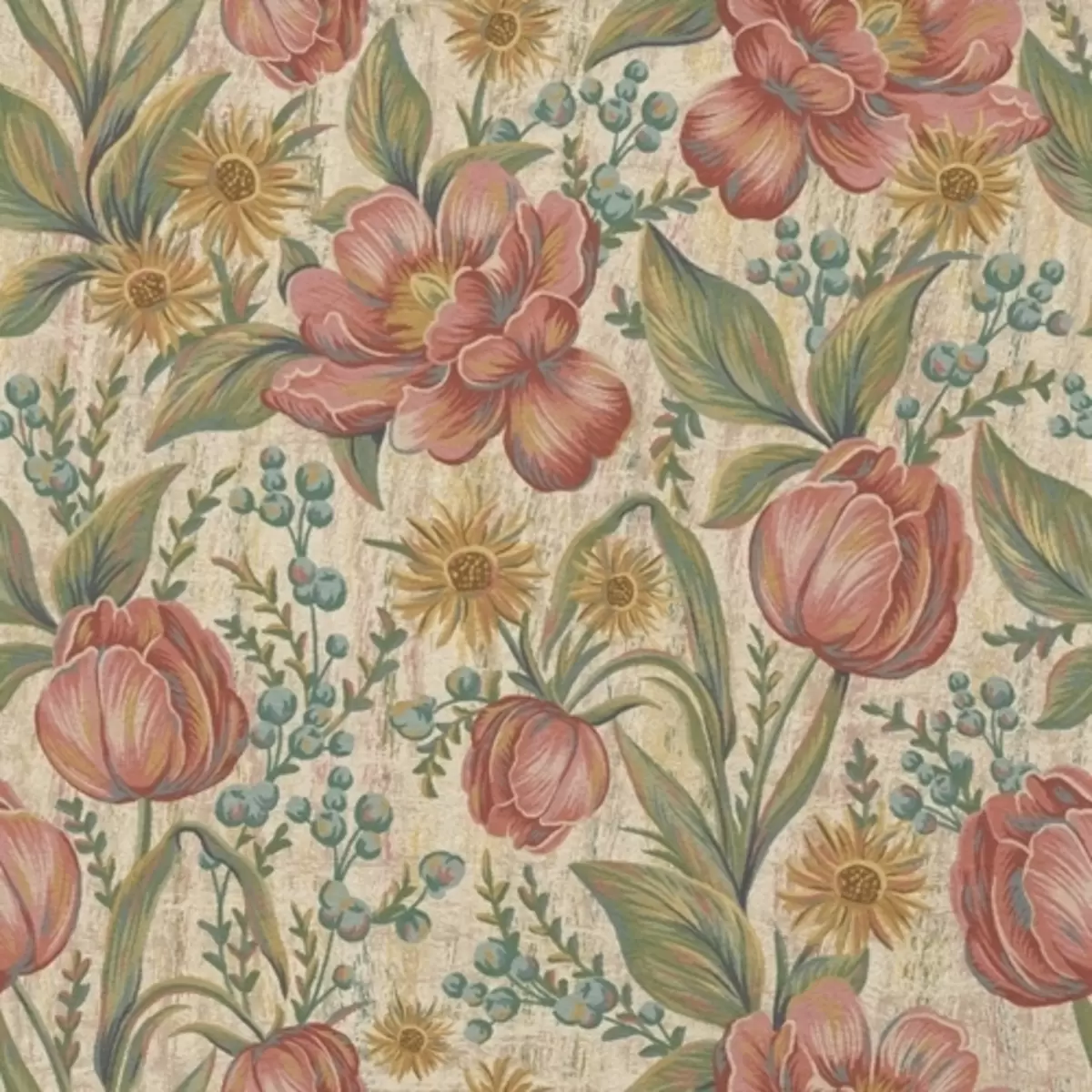 Fototapeten Vintage-Tulpen und Astern, strukturierter cremefarbener Hintergrund N° a00773