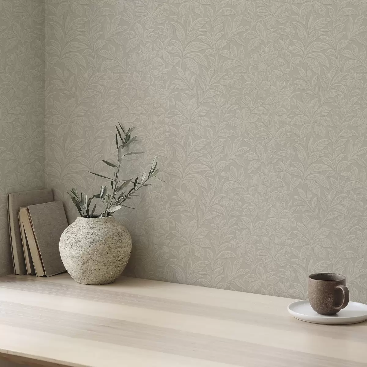 Tapete Geprägte Blattsilhouetten, warmes Taupe Nr. a00781