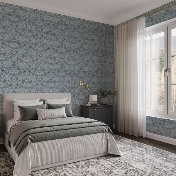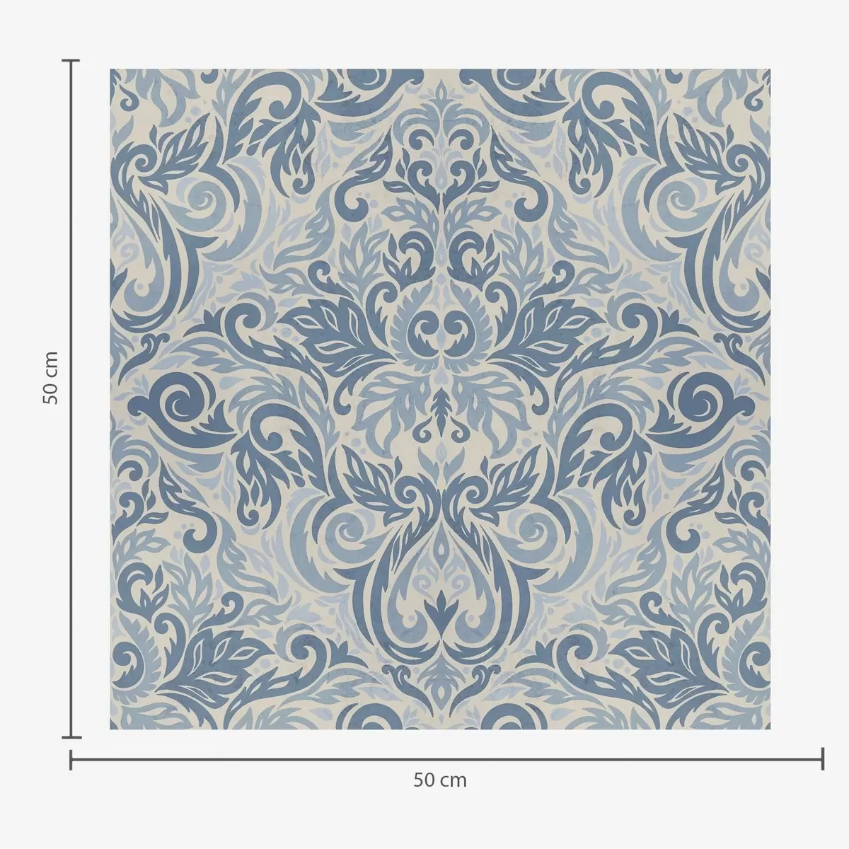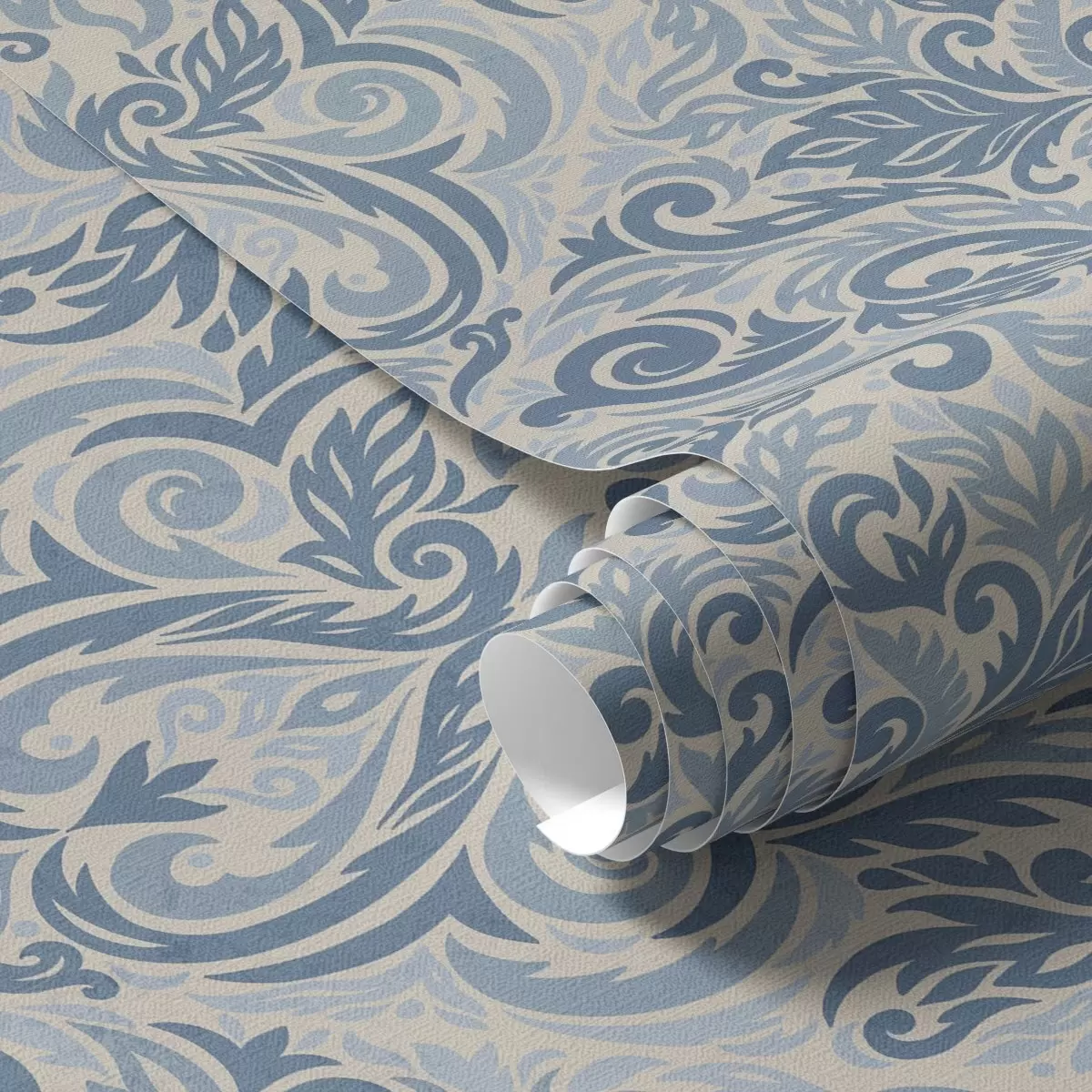 Tapete Klassischer Damast, blaue Motive auf cremefarbenem Grund Nr. a00826v1