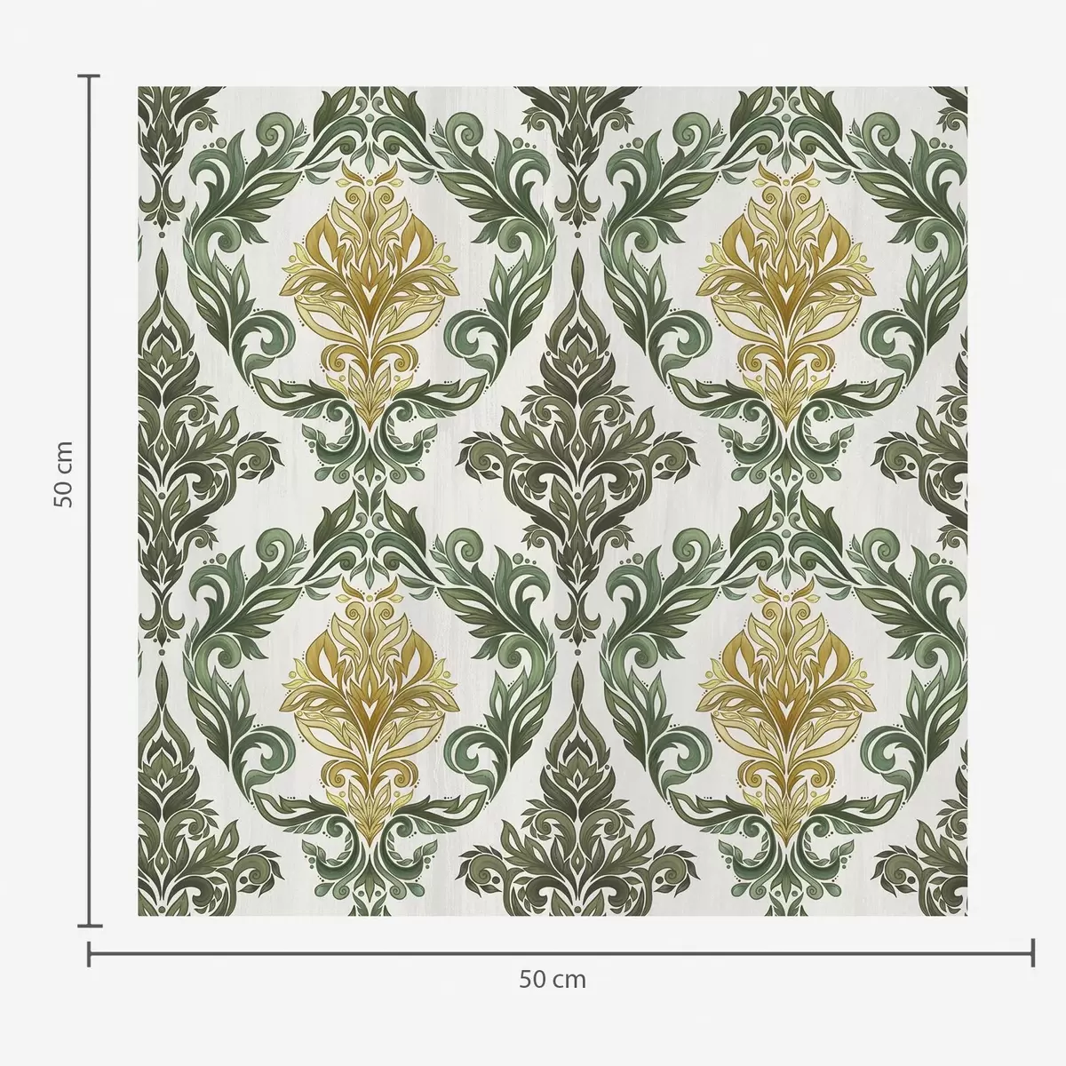 Tapete Damast mit grünen Schnörkeln auf hellem Grund Nr. a00828v1