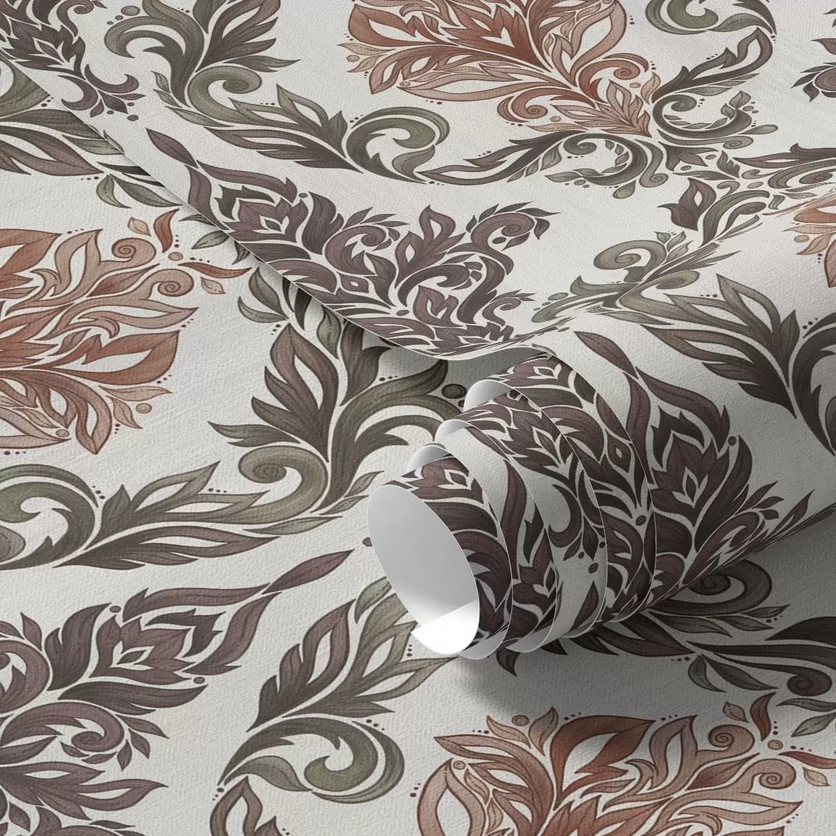 Tapete Damast mit kupferbraunen Akzenten auf hellem Grund Nr. a00828v4