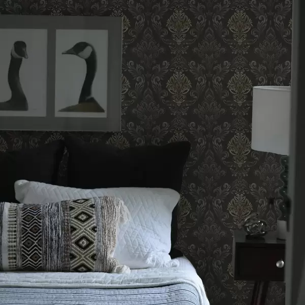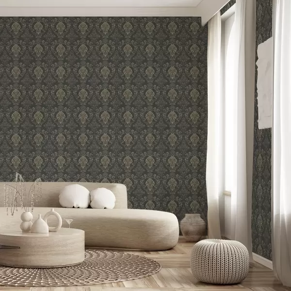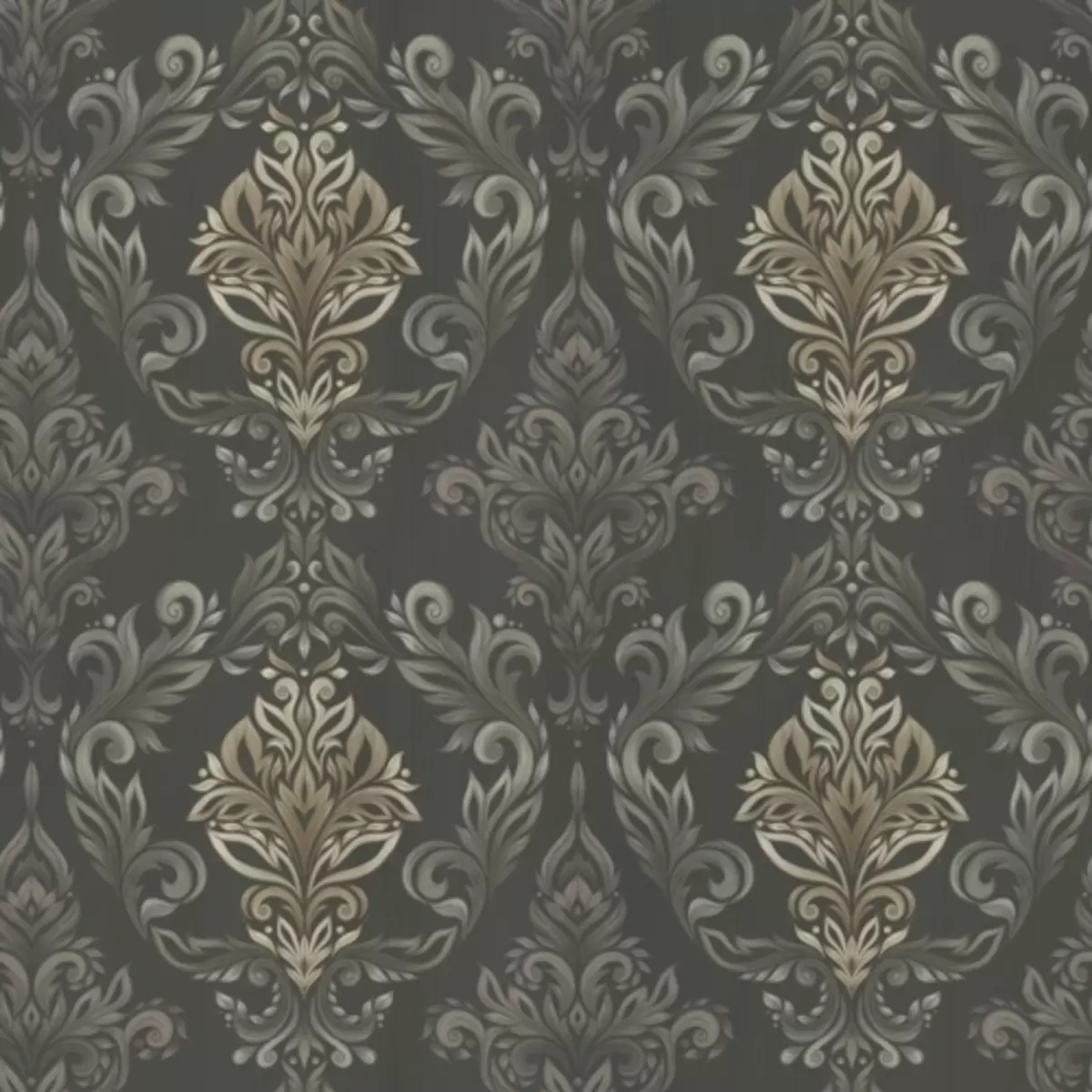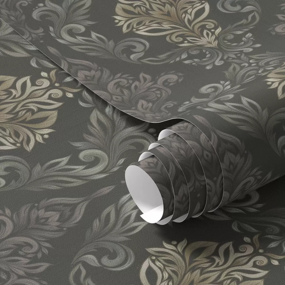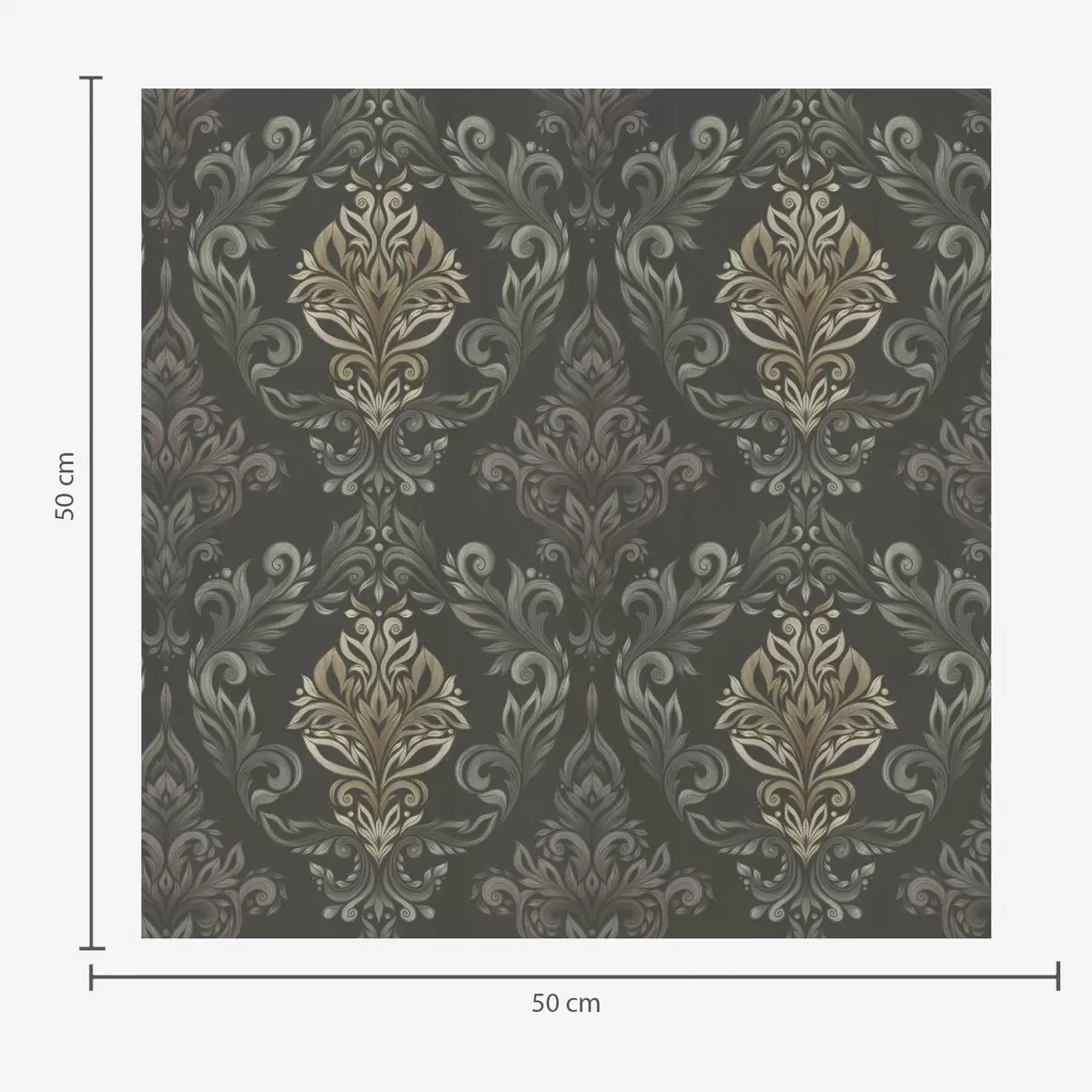 Fototapeten Damast auf dunklem Graphitgrund, Akzente in Oliv-Ocker N° a00828v5