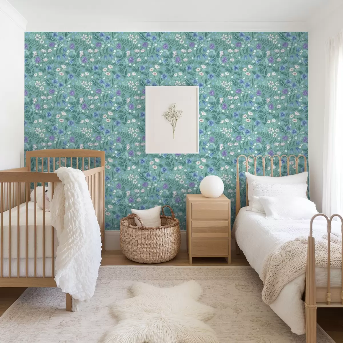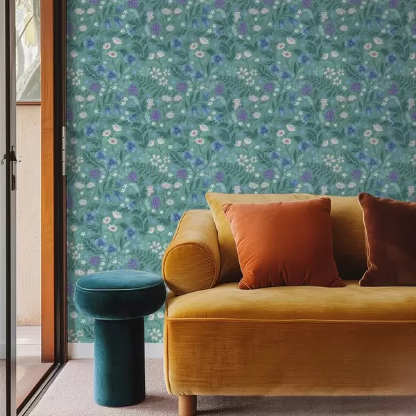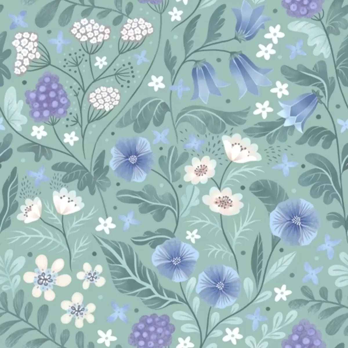 Fototapeten Wildblumen und Beeren auf sanftem Minzhintergrund N° a00849