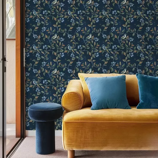 Fototapeten Titten auf Ästen, nachtblauer Hintergrund mit Funken N° a00858