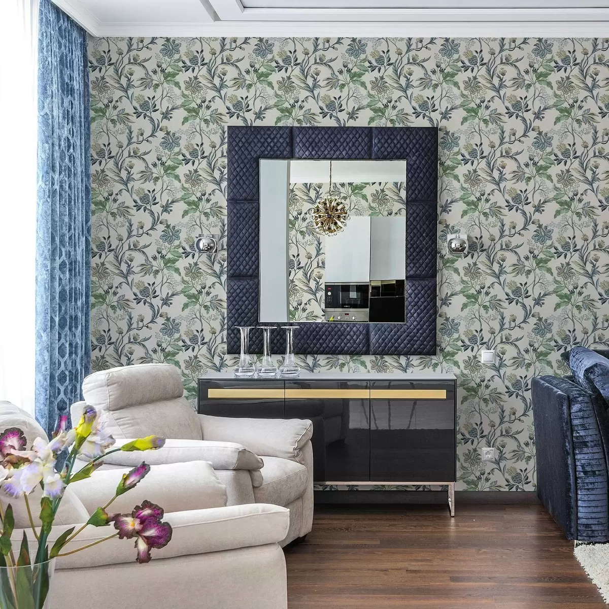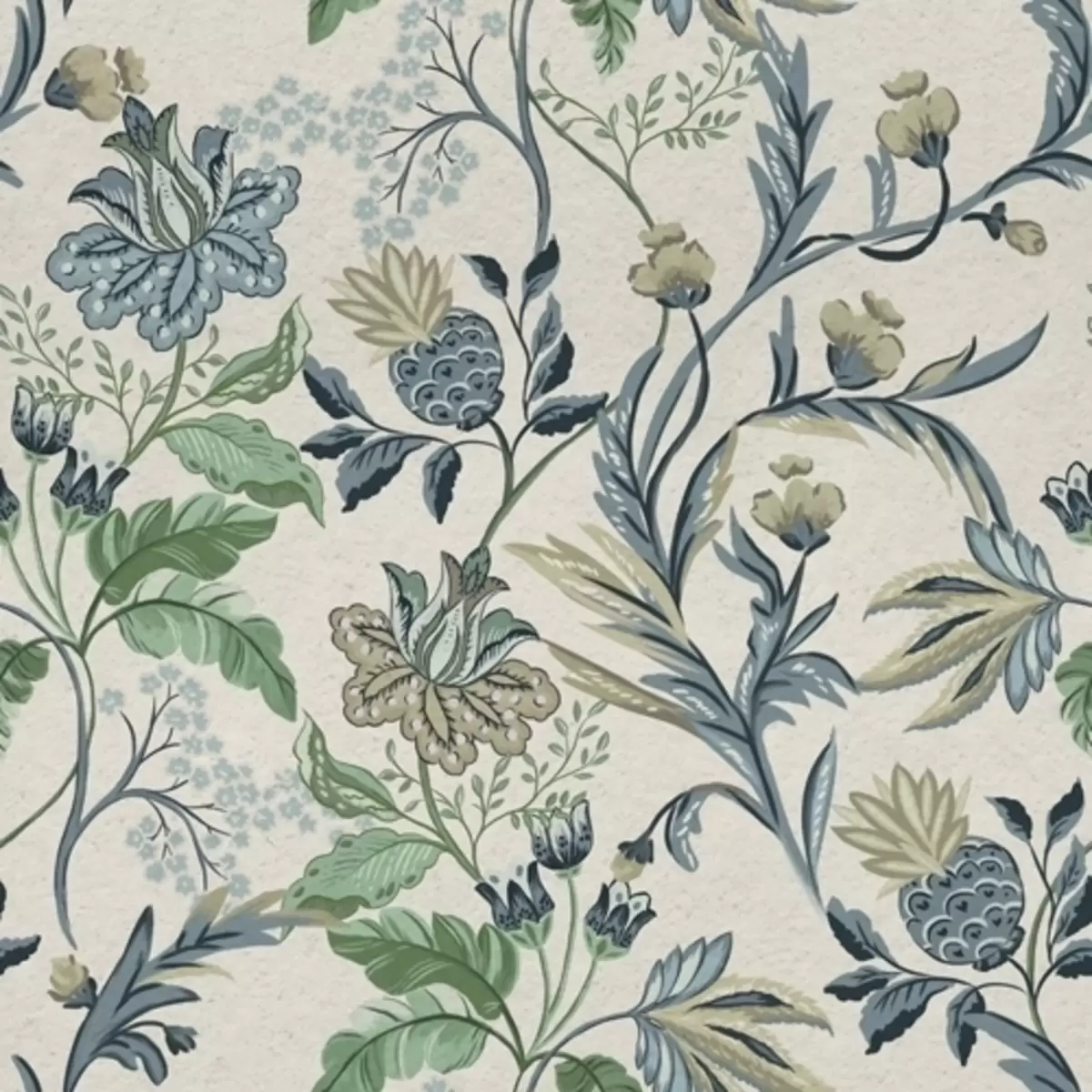 Fototapeten Blaugrüne Folk-Blumen und Blätter auf Cremefarbenem N° a00863