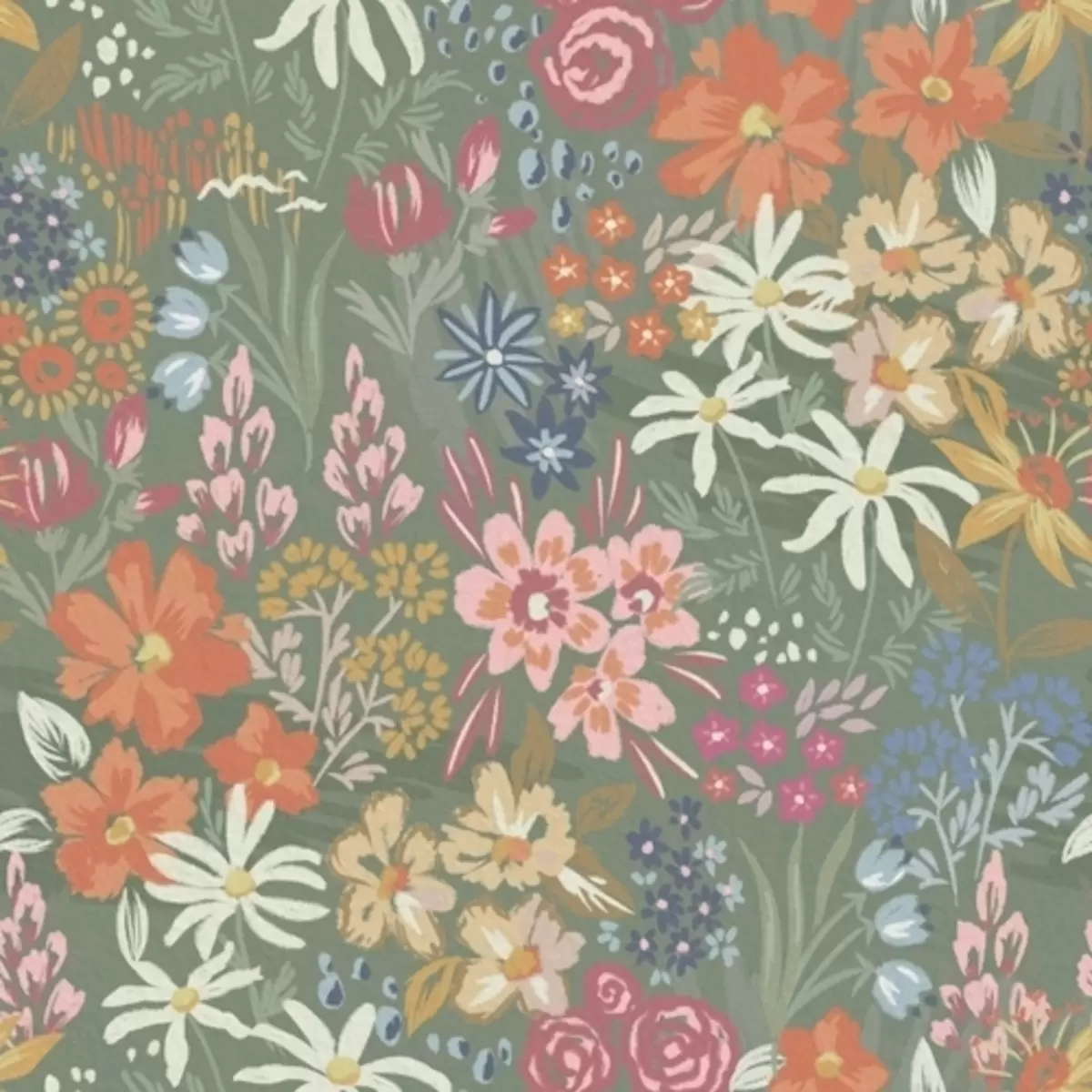Fototapeten Malerische Wiesenblumen auf Salbeigrün N° a00864