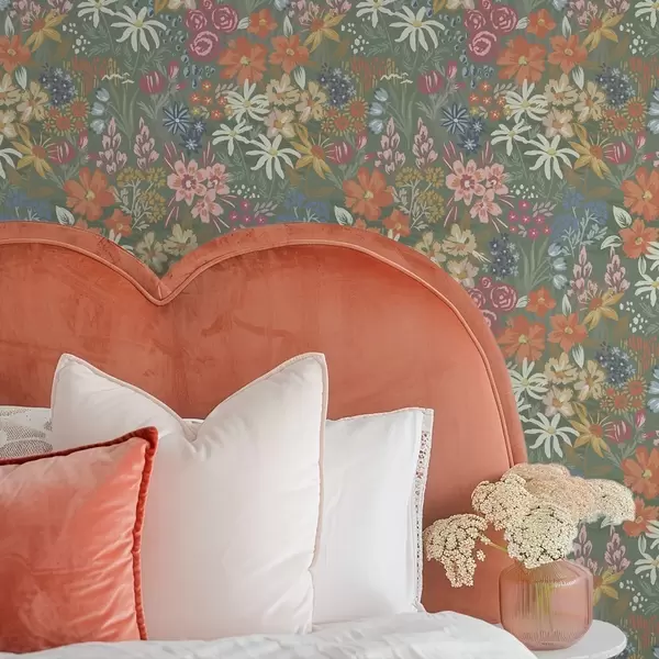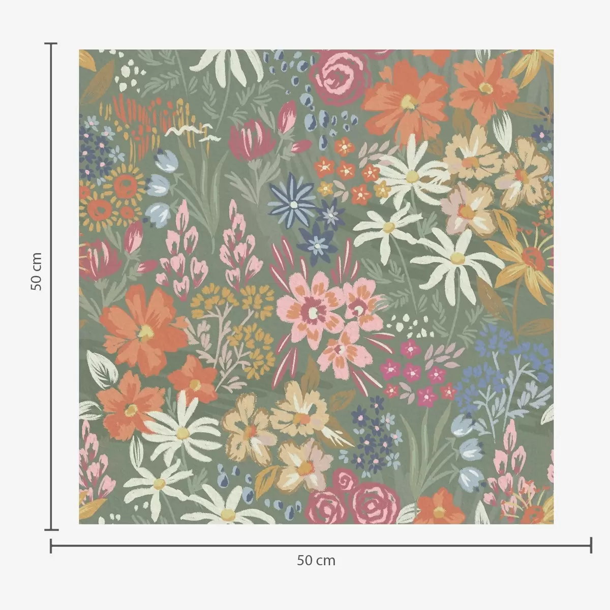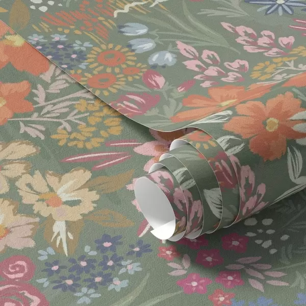Fototapeten Malerische Wiesenblumen auf Salbeigrün N° a00864