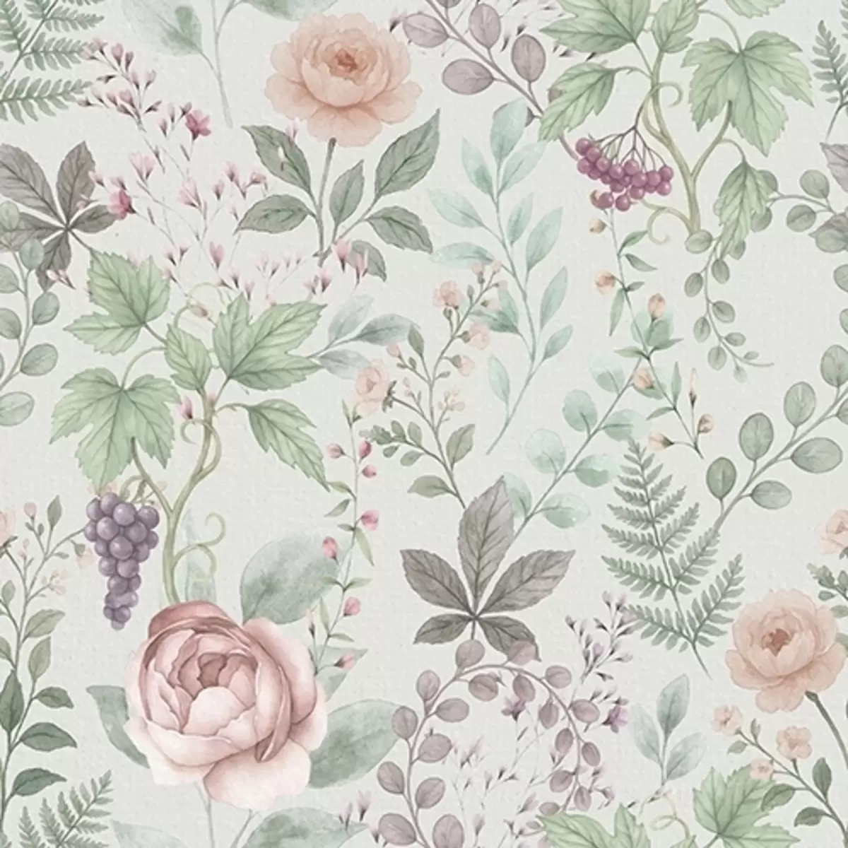 Fototapeten Pastellfarbener Garten mit Rosen, Farnen und Trauben N° a00867
