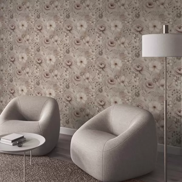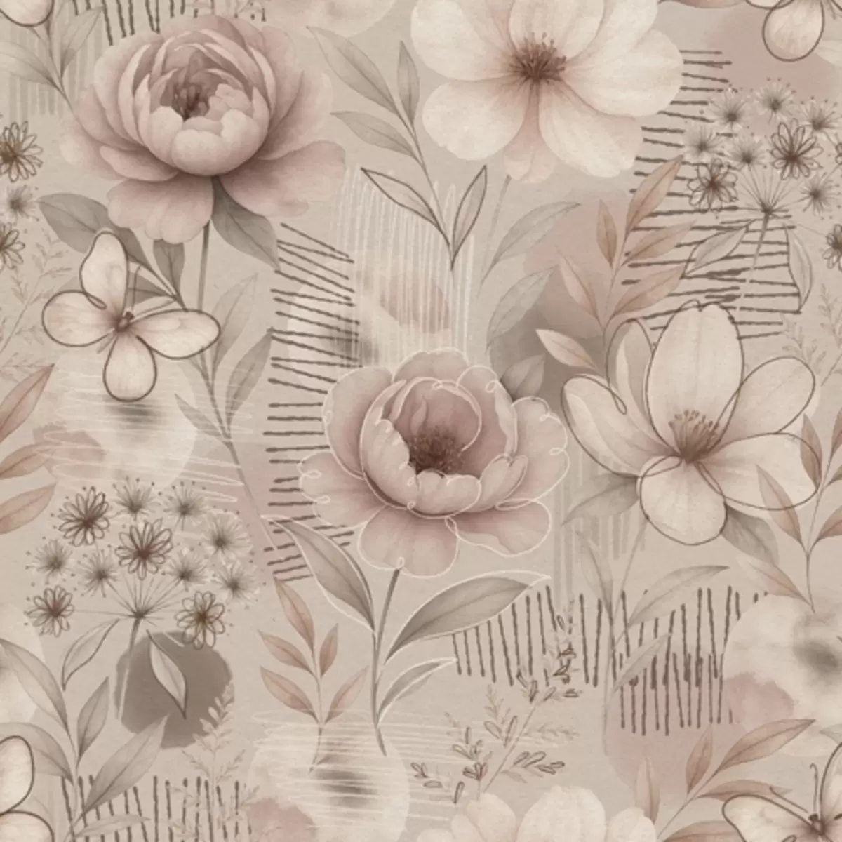 Fototapeten Sepia-beige Blumenmuster mit Schmetterlingen und linearen Akzenten N° a00870