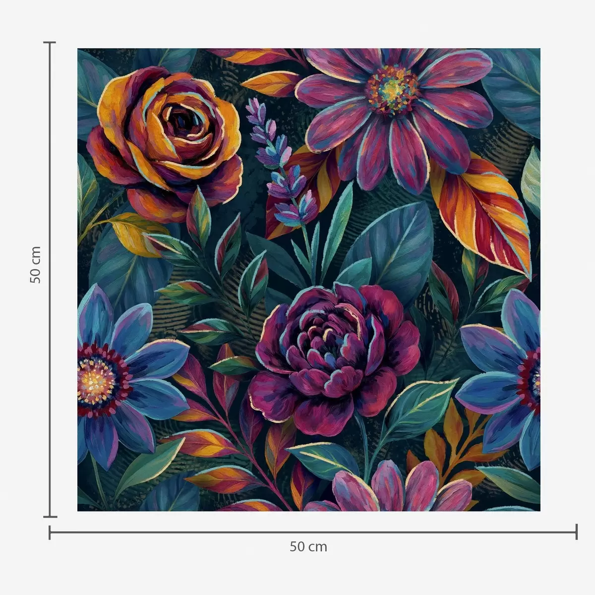 Fototapeten Lebhafte Blumen in Juwelenfarben auf tiefem Marineblau N° a00871