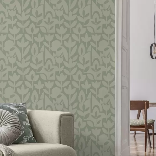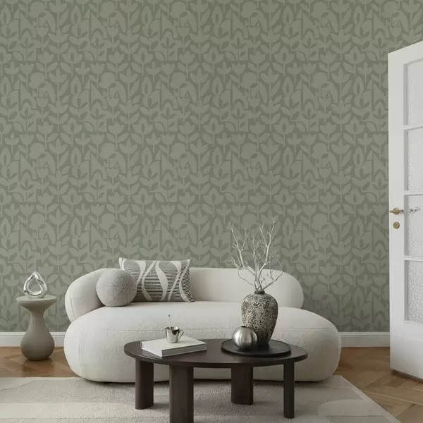 Fototapeten Geometrische Blumensilhouetten in zartem Salbei N° a00875v1
