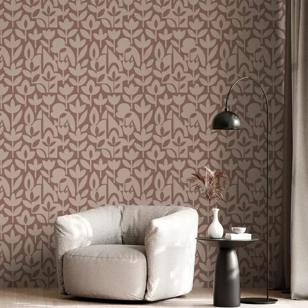 Fototapeten Geometrische Blumensilhouetten in Terrakotta und Creme N° a00875v2