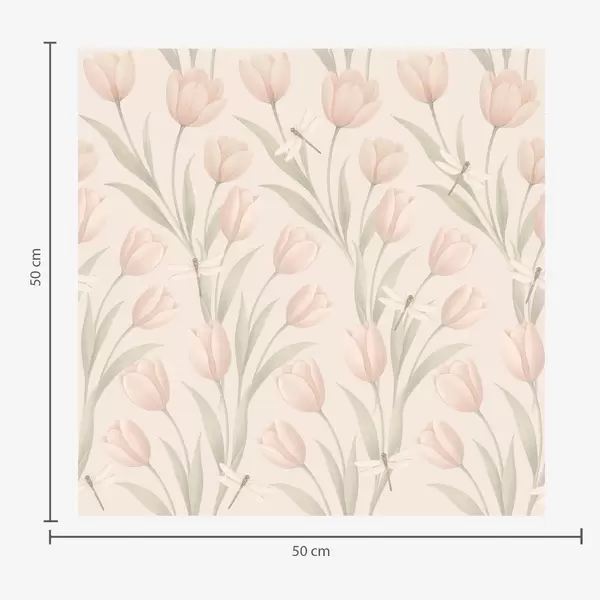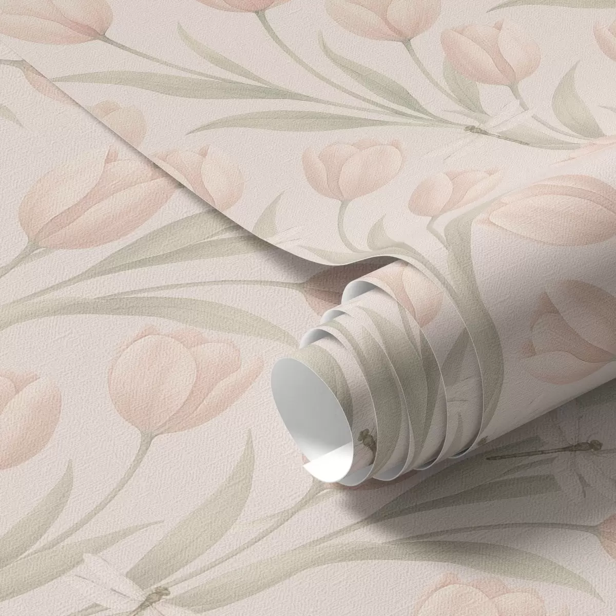 Fototapeten Pastellfarbene Tulpen mit Libellen auf Blush N° a00876