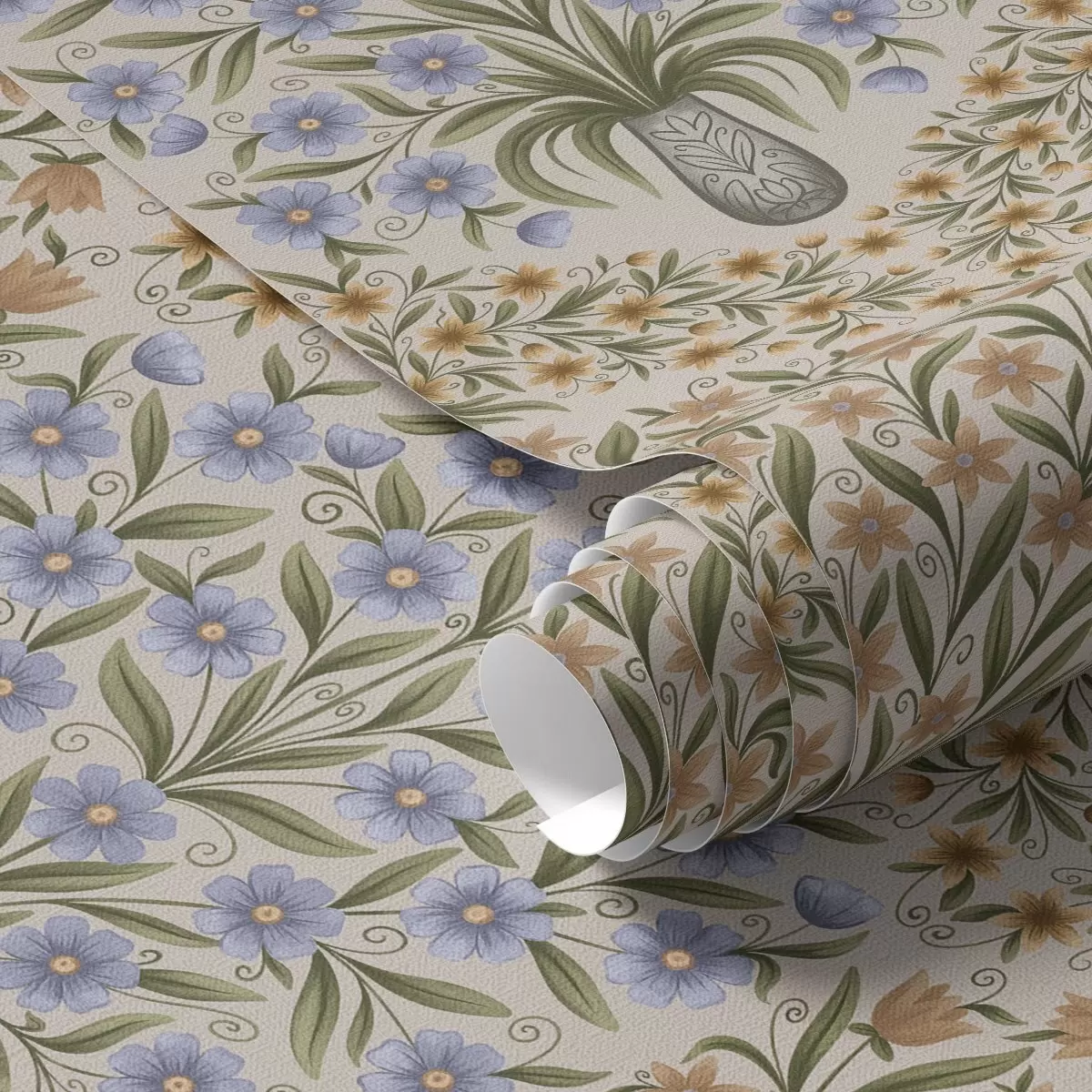 Fototapeten Wechselnde Vasen und blaue Blumen in Salbei auf Blush N° a00901