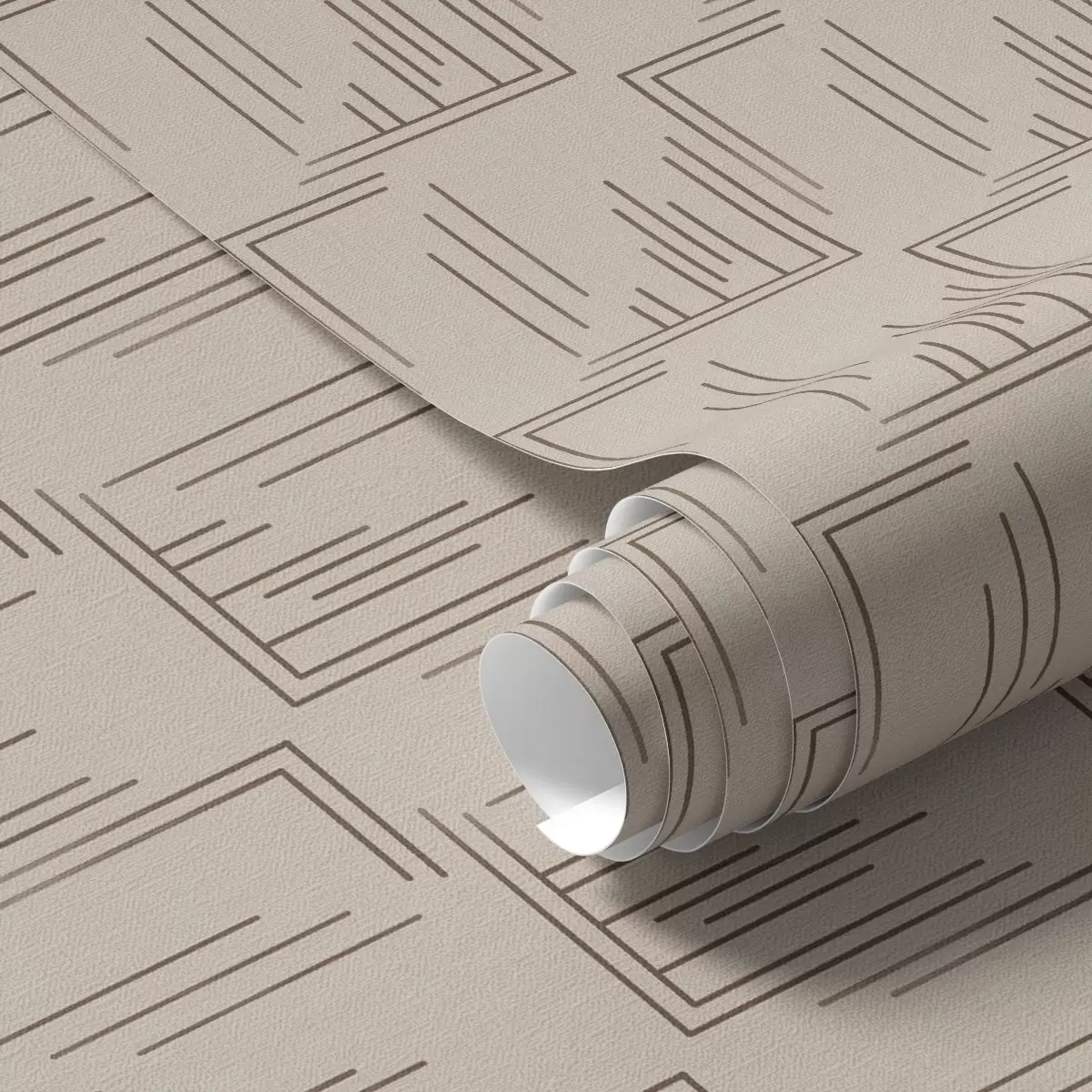 Fototapeten Kakao-Linienarbeit Eckquadrate auf warmem Beige N° a00910