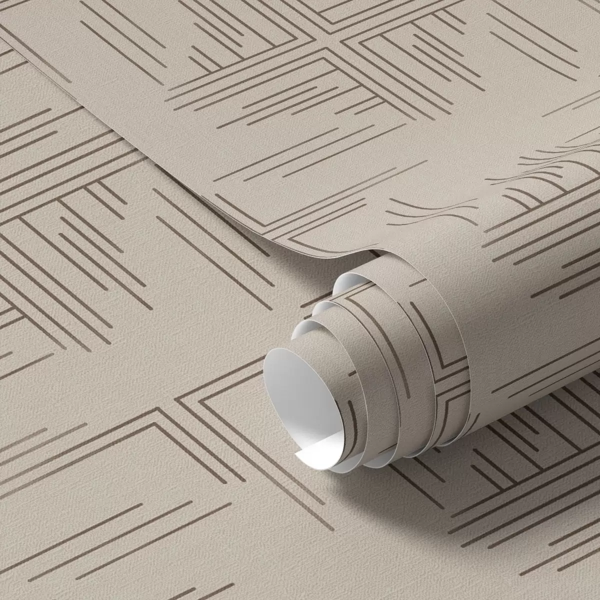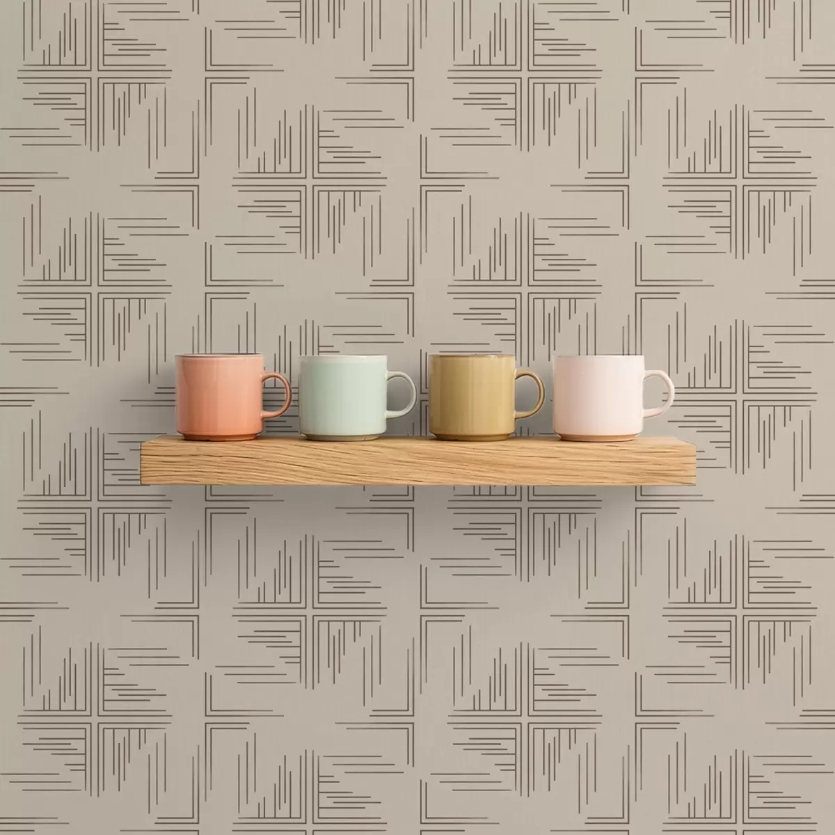 Fototapeten Versetzte Kakaoschalen-Eckblöcke mit verstreuten Linienakzenten, beige N° a00912