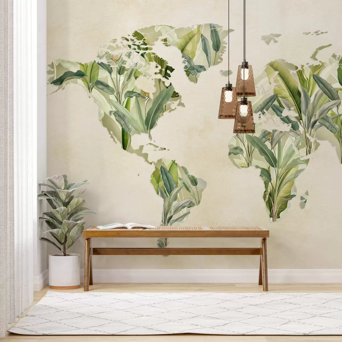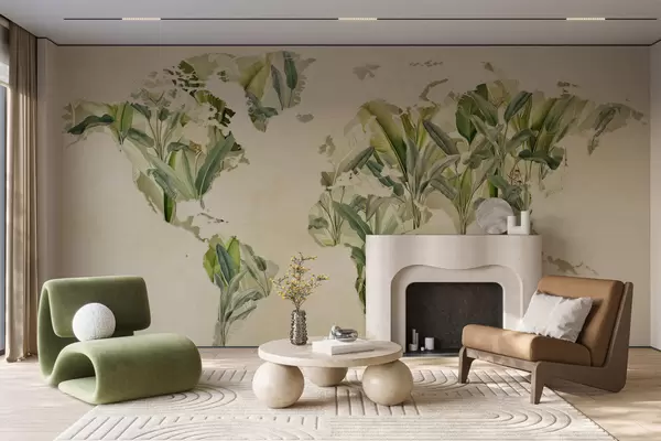Fototapeten Eine grüne Weltkarte aus Bananenblättern N° c00007