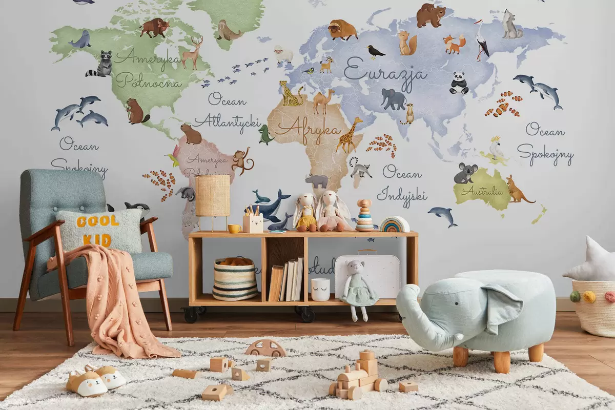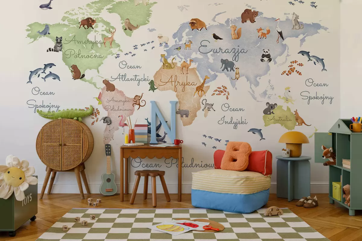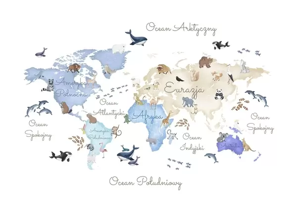 Fototapeten Eine Farbkarte im Aquarellstil mit Tiermotiven. Beschriftungen auf Polnisch N° c00012pl