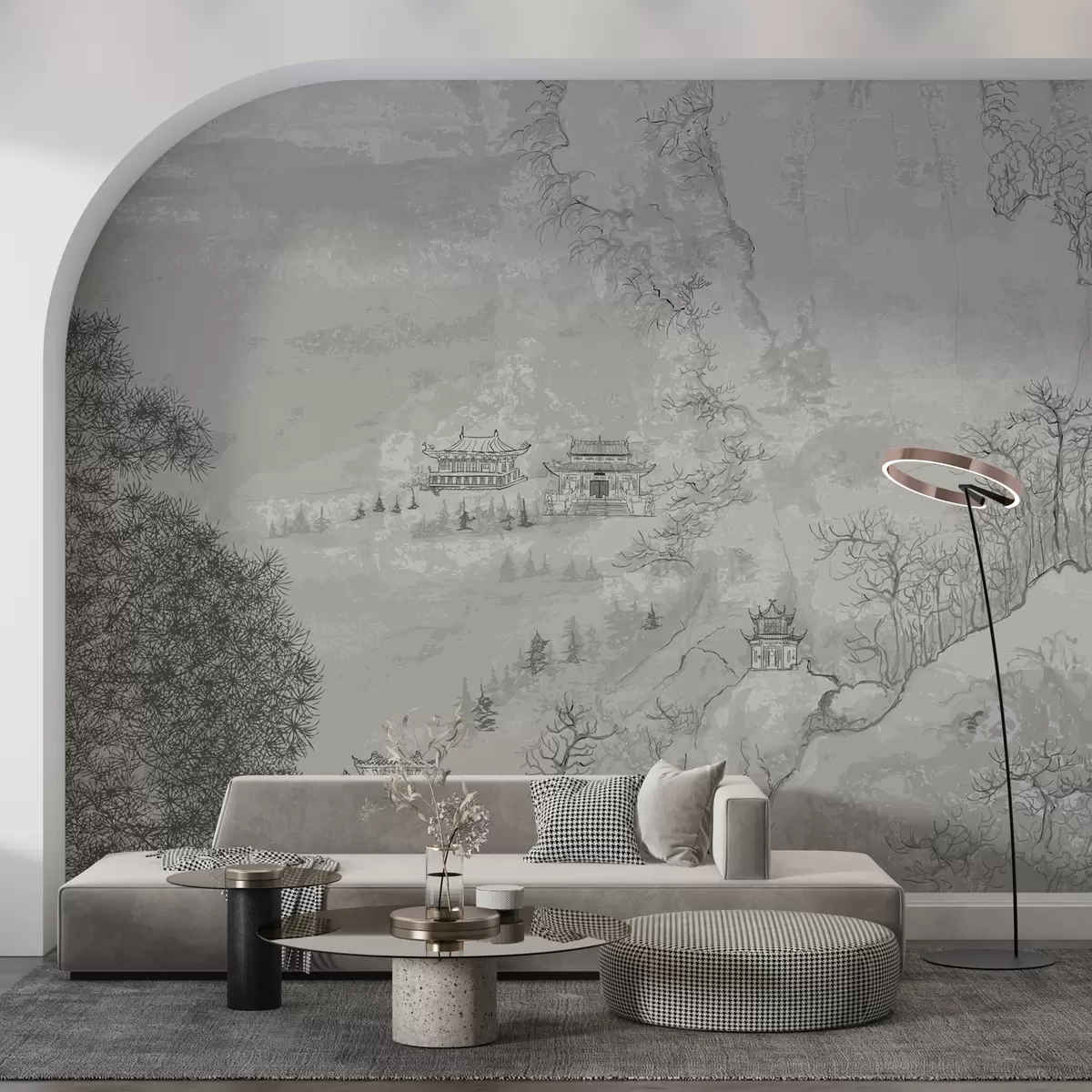 Fototapeten Illustration einer chinesischen Landschaft im Stil der alten chinesischen Malerei N° u98699