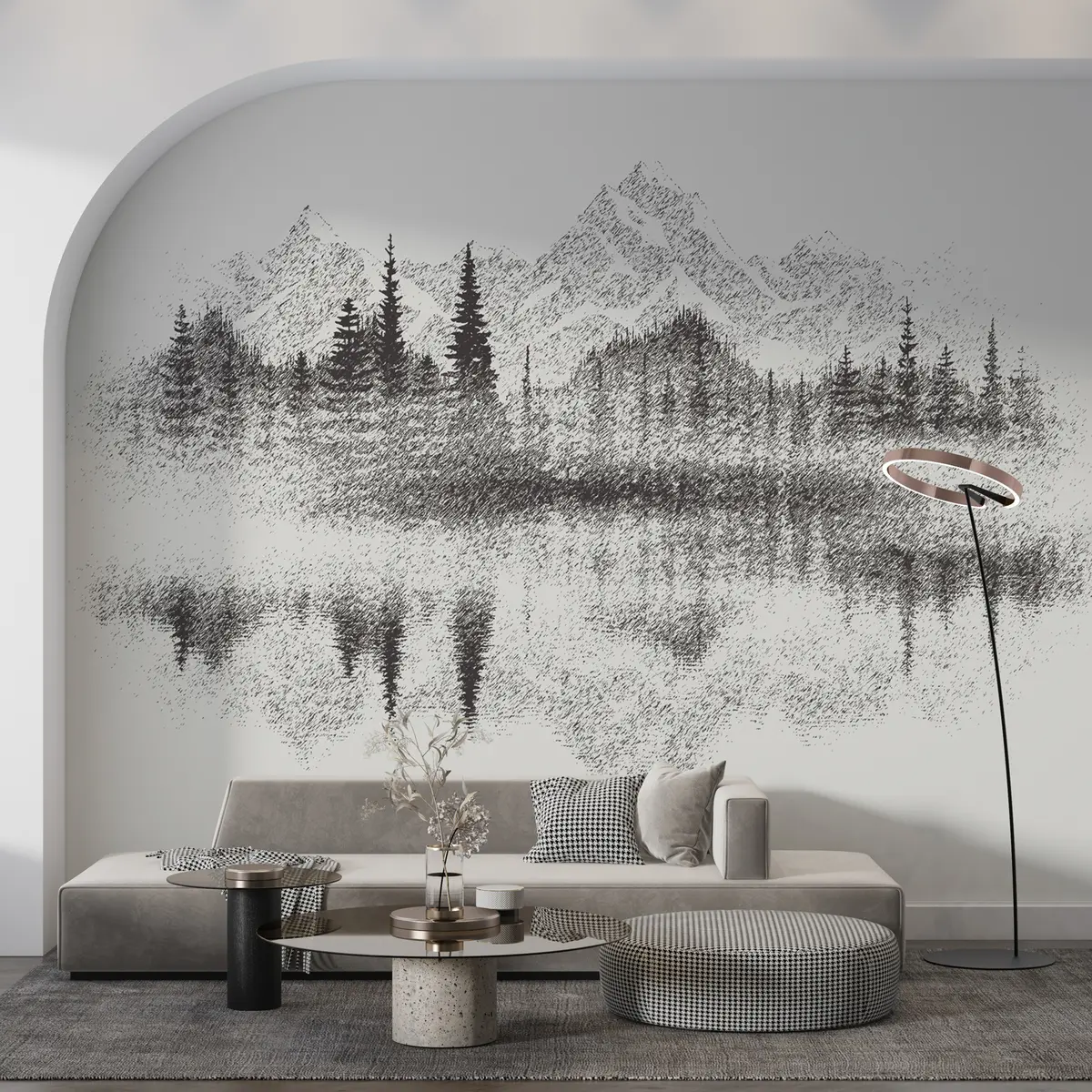 Fototapeten Der Wald und die Berge spiegeln sich im See N° u98808