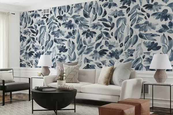 Fototapeten Elegantes florales Muster in Blautönen N° u99457