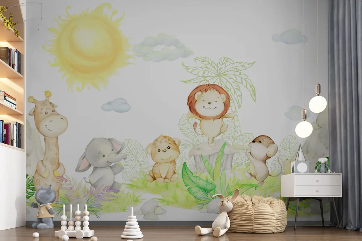 Fototapeten Niedliche tropische Tiere im Aquarellstil N° u99486