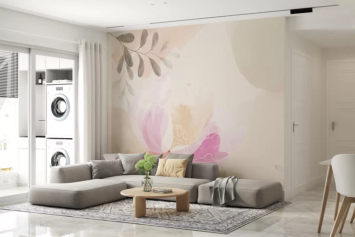 Fototapeten große Blume, Pastell, Aquarell, Beige Farbe N° w00396