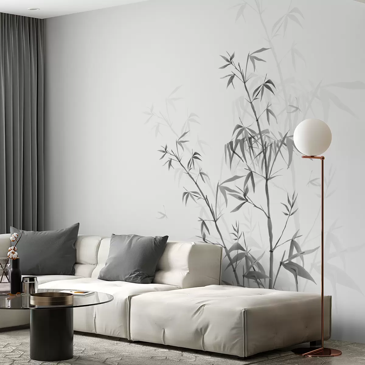 Fototapeten Minimalismus-Stil Japandi-Pflanze Bambus Chinoiserie graue Farbe N° w00546v1