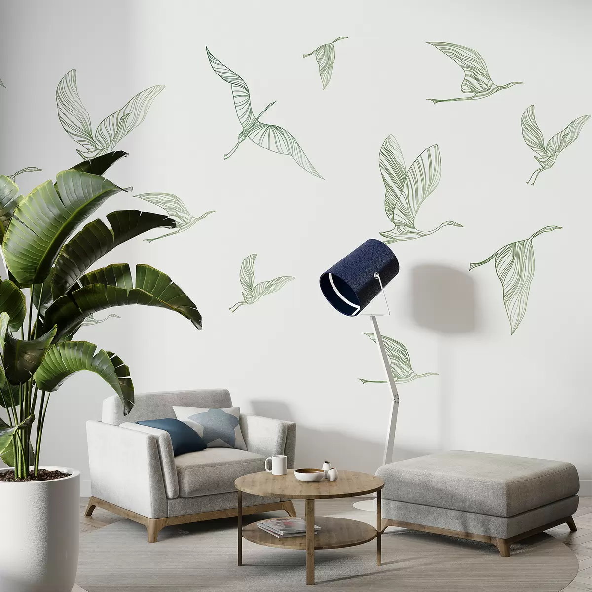 Fototapeten Fliegende Vögel Strichzeichnungen, Minimalismus, Natur, grüne Farben N° w00758v2
