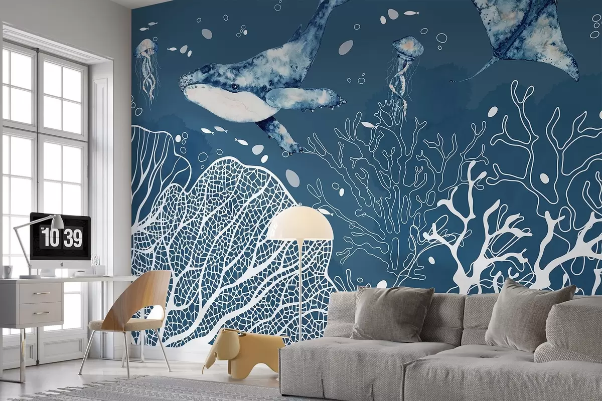 Fototapeten Unterwasserwunder in leuchtenden Blautönen N° w00848v1