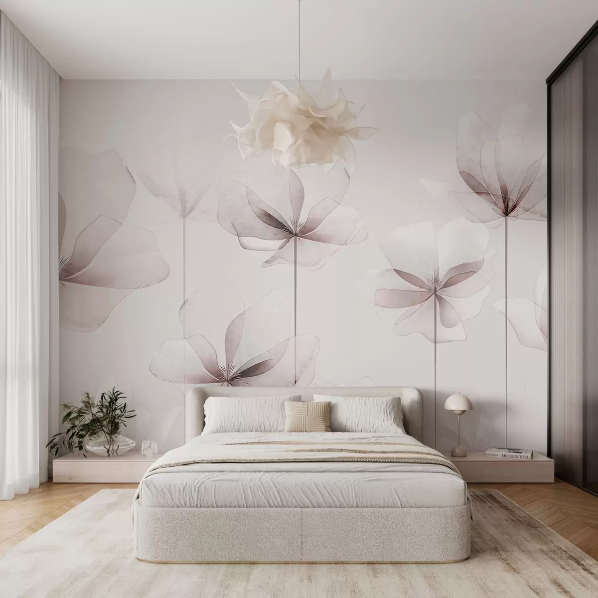 Fototapeten Zarte transparente Blumen 3D Art Deco moderner Stil Trend N° w00895