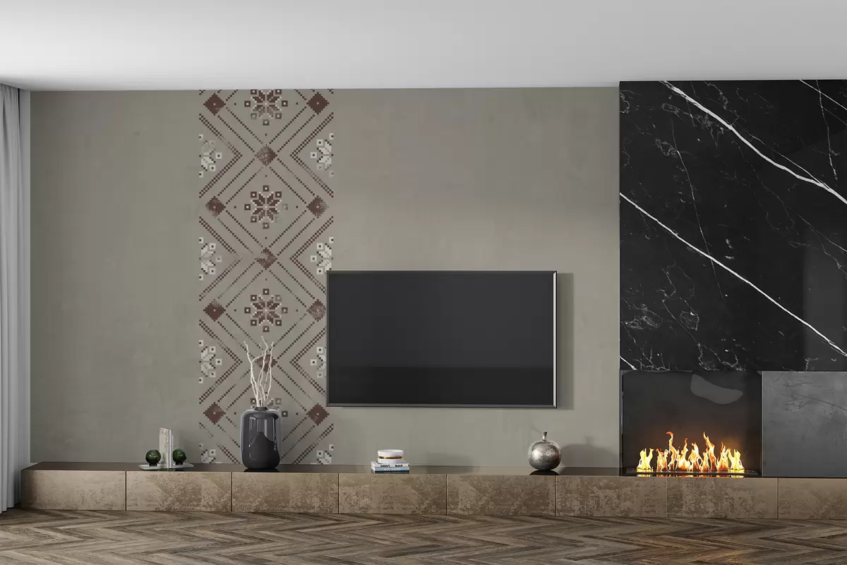 Fototapeten Patriotische Strukturtapete mit minimalistischem Ornament im ukrainischen Stil in Brauntönen N° w01027v1